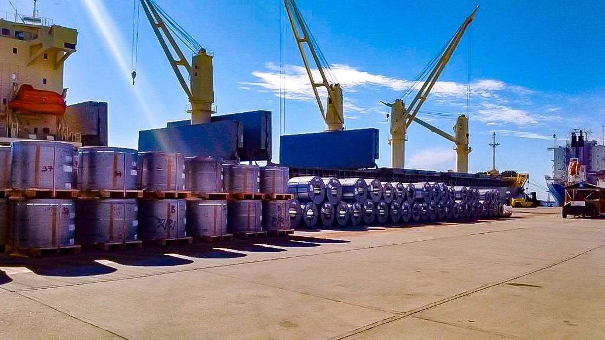 Acero (Manufacturas, Rollos de lámina, Vigas y Perfiles, Rieles para Ferrocarril, Placas).